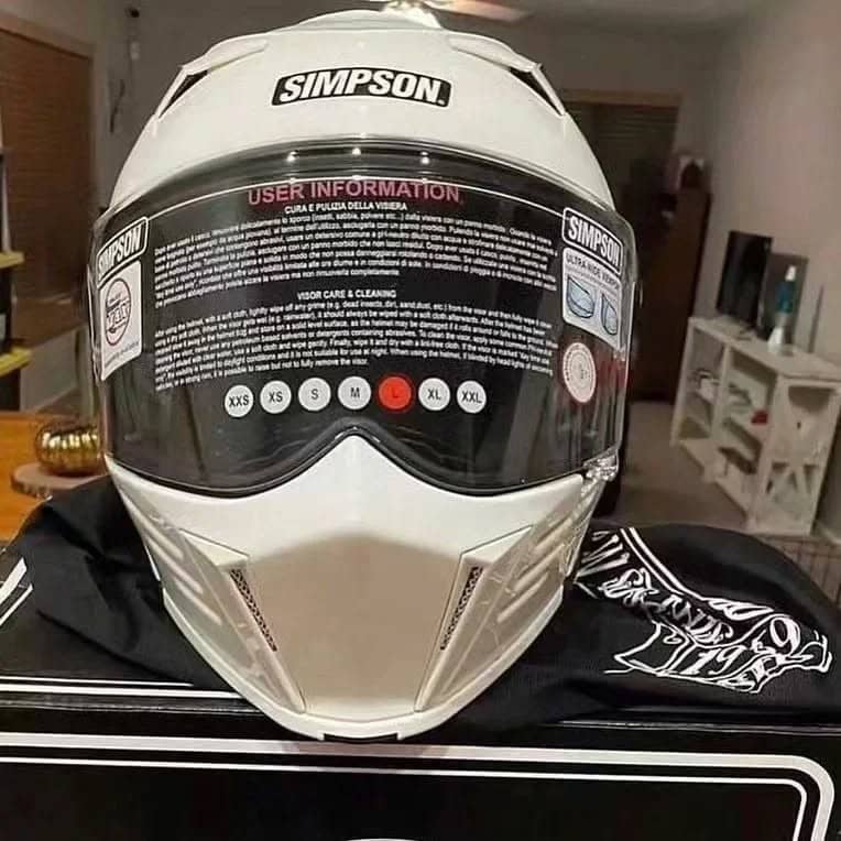 / Simpson matte white ghost bandit.\nWith clear and smoke shield. there’s L, XL and XXL